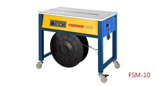 FROMM FSM-10是一款基本型的半自動PP帶打包機,適合一般工廠出貨打包用,可將二或三個紙箱打緊成一件貨減少搬運時間,並同時節省運費。