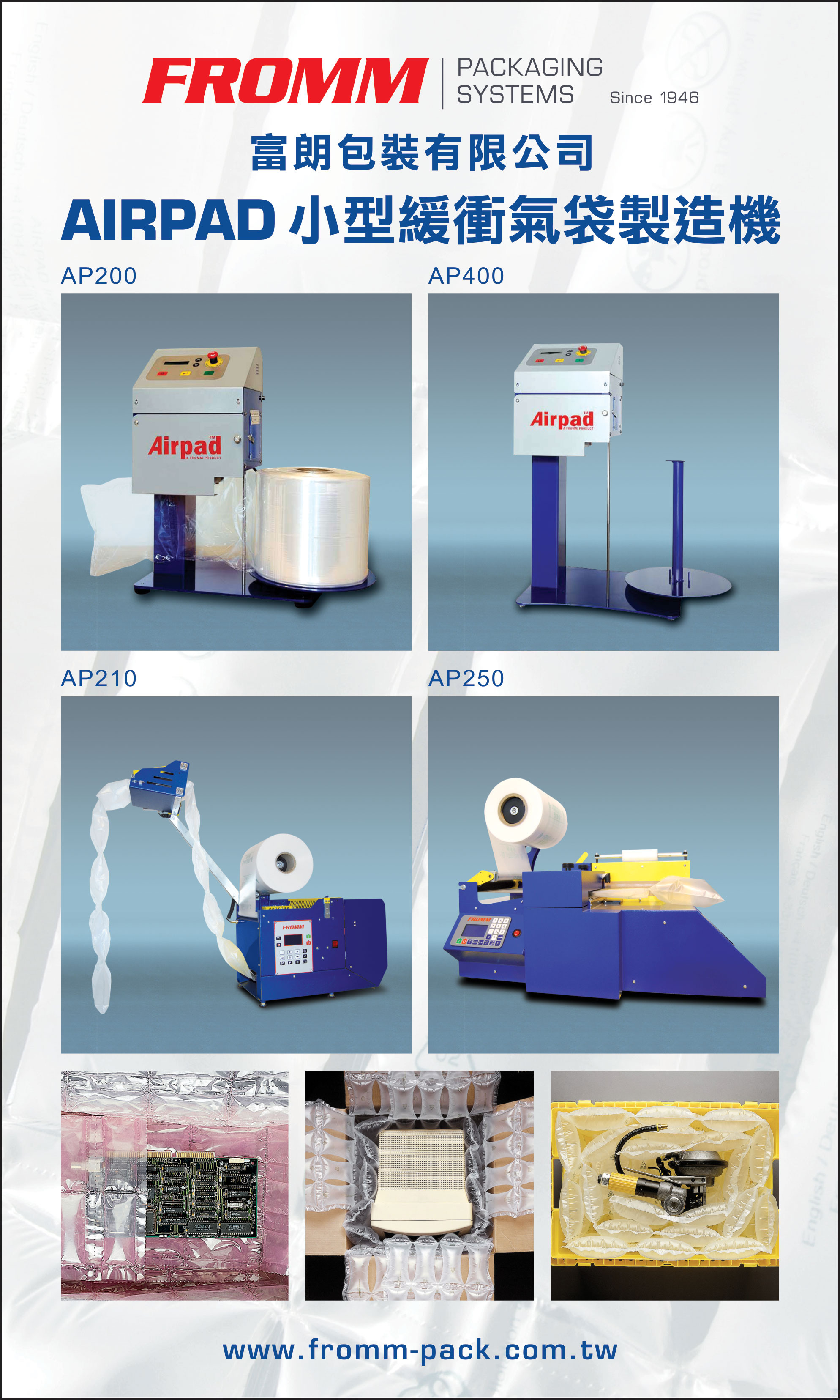 來自瑞士【FROMM富朗包裝】這次在台北國際物流展當中,【FROMM富朗包裝】將展出最新 電動打包機系列 ,緩衝氣墊機, 自走式裹包機, 手提打包機,提供物流業最佳箱外和箱內包裝解決方案,歡迎各界貴賓蒞臨指教
